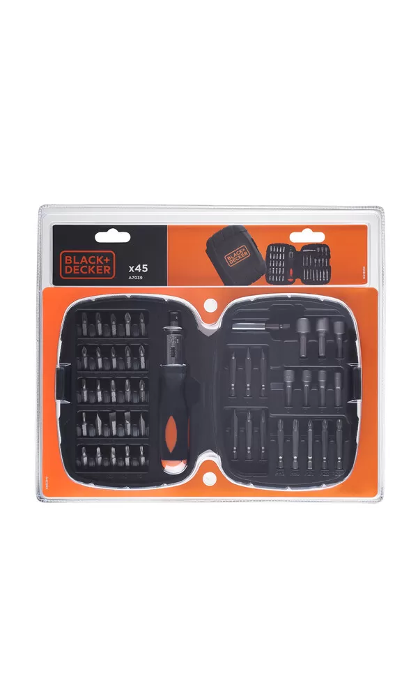 Sada 45ks bitů a nástrčných klíčů s ráčnovým šroubovákem Black&Decker A7039