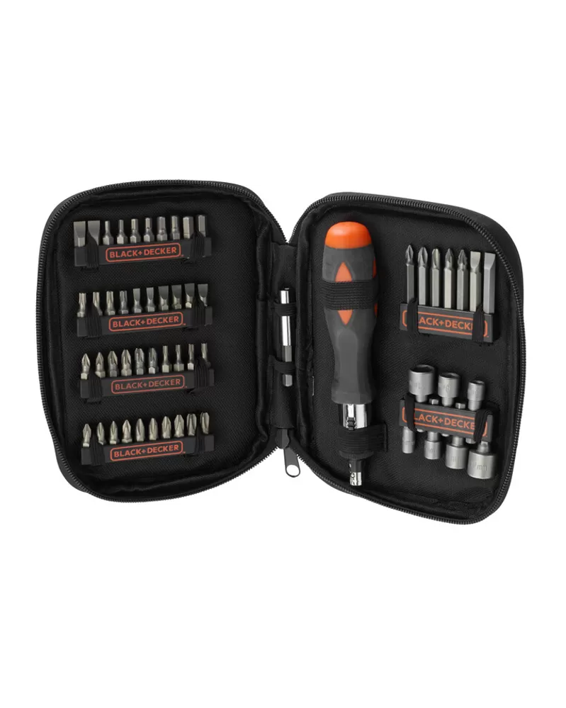 Sada 56ks bitů a nástrčných klíčů s ráčnovým šroubovákem Black&Decker A7104