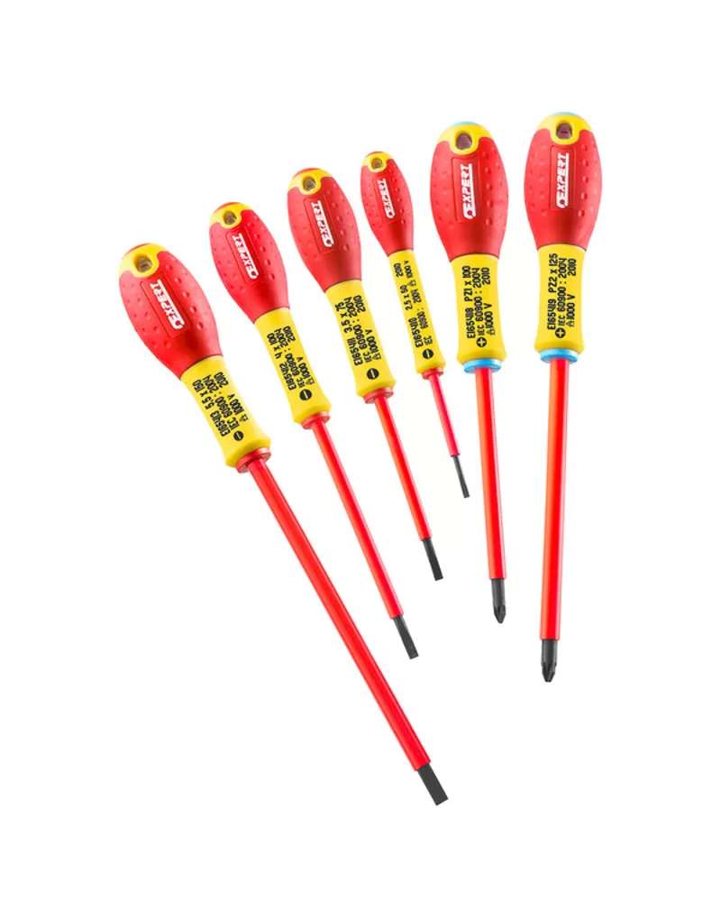 6dílná sada izolovaných šroubováků plochý/Pz Ergonomická bimateriální rukojeť pro pohodlnou a efektivní práci Použití do 1000 V Barevné… Celý popis