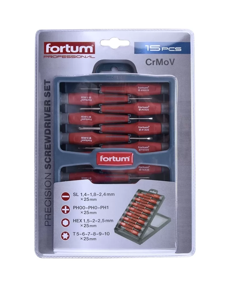 Hodinářské šroubováky sada 15ks CrMoV FORTUM 4740802