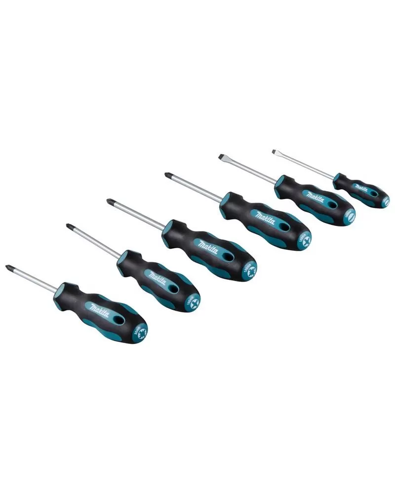 Sada obsahuje 6 ks šroubováků o rozměrech SL4.0x100, SL5.5x100, PH1x100, PH2x100, PZ1x80, PZ2x100. Rukojeti jsou vyrobeny z velmi kvalitního materiálu odolného proti oleji. Samotný šroubovák je vyroben z kvalitní Cr-V oceli, která zajišťuje dlouhou životnost