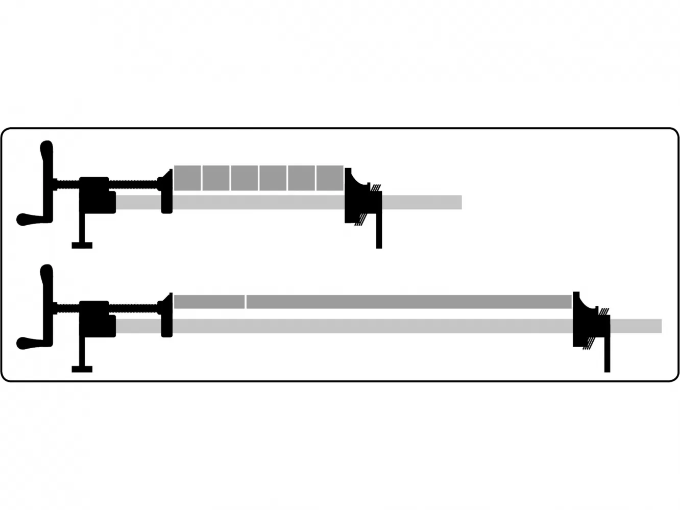 • Výhodou svěrky je možnost nastavení požadované pracovní délky a také možnost používání v páru, popř. i ve více kusech (dodávka obsahuje pouze 1kus)