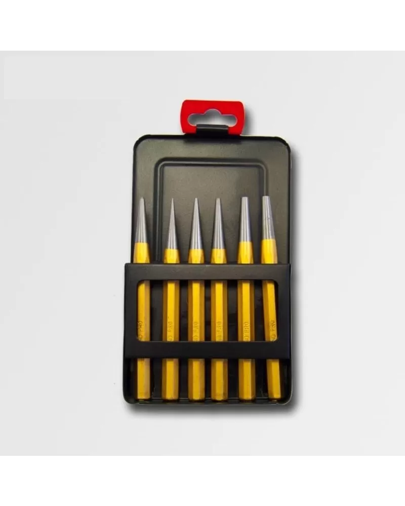 6-ti dílná sada důlčíků a průbojníků v plechovém boxu STAVTOOL Sada obsahuje: důčík: špice, 1,5 2,2 průbojník: 2,9;3,6;5,2 Celý popis