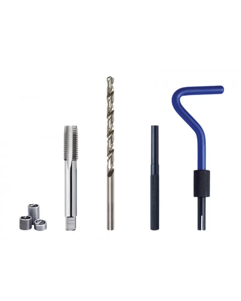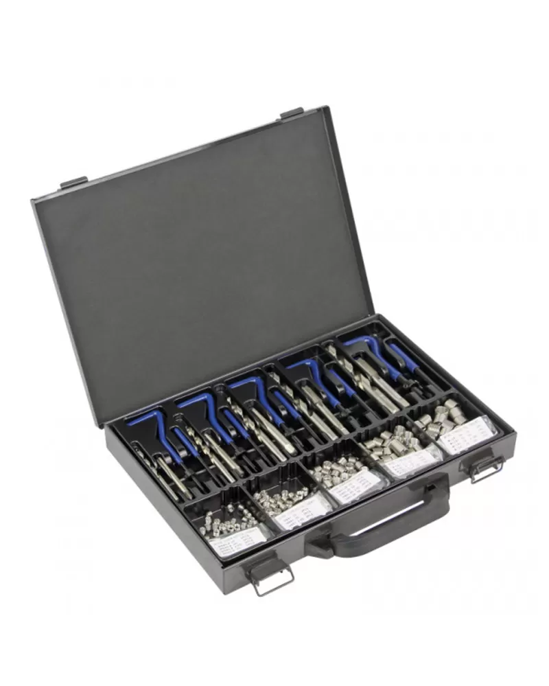 • 110 ks opravných vložek: 25 ks M5 × 0,8 mm / 25 ks M6 × 1 mm / 25 ks M8 × 1,25 mm / 25 ks M10 × 1,5 mm / 10 ks M12 × 1,75 mm