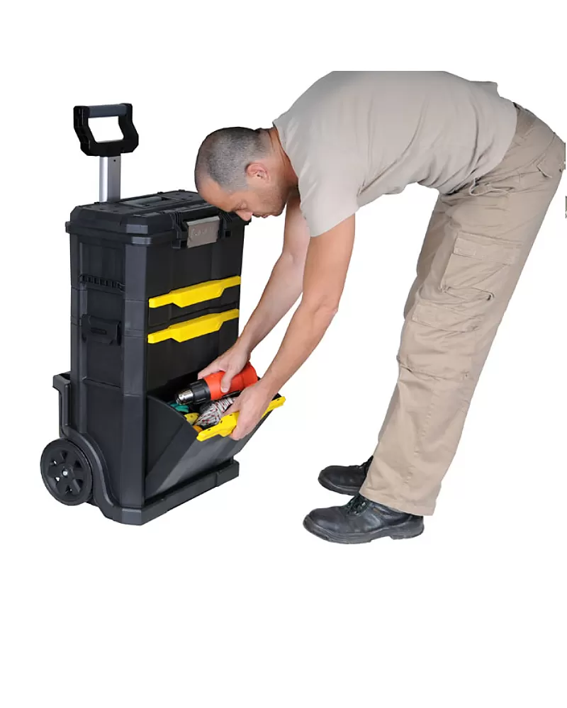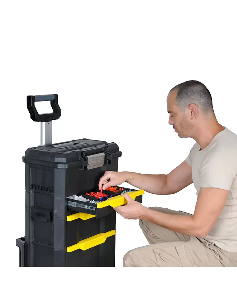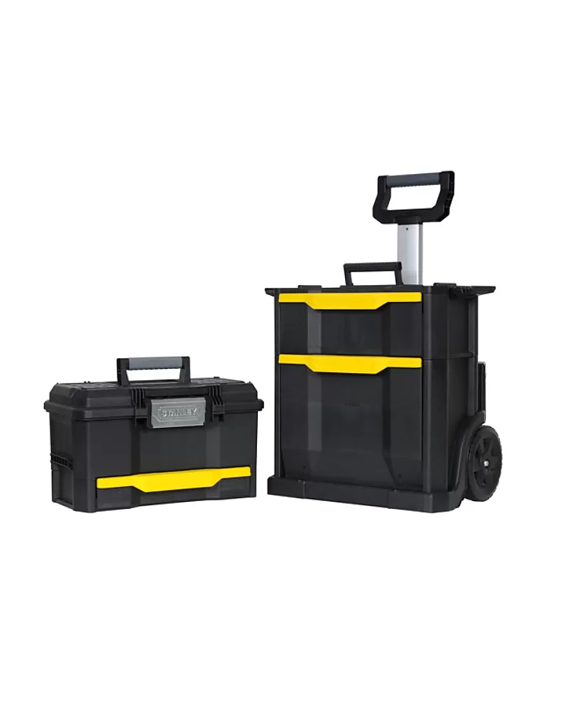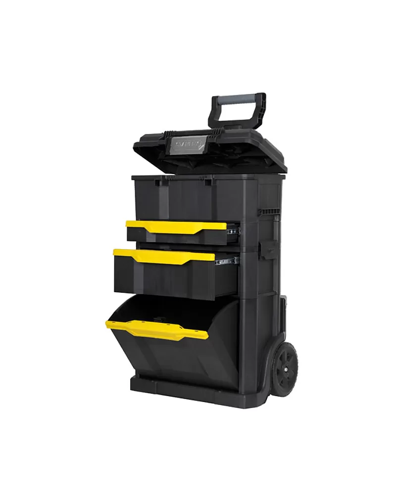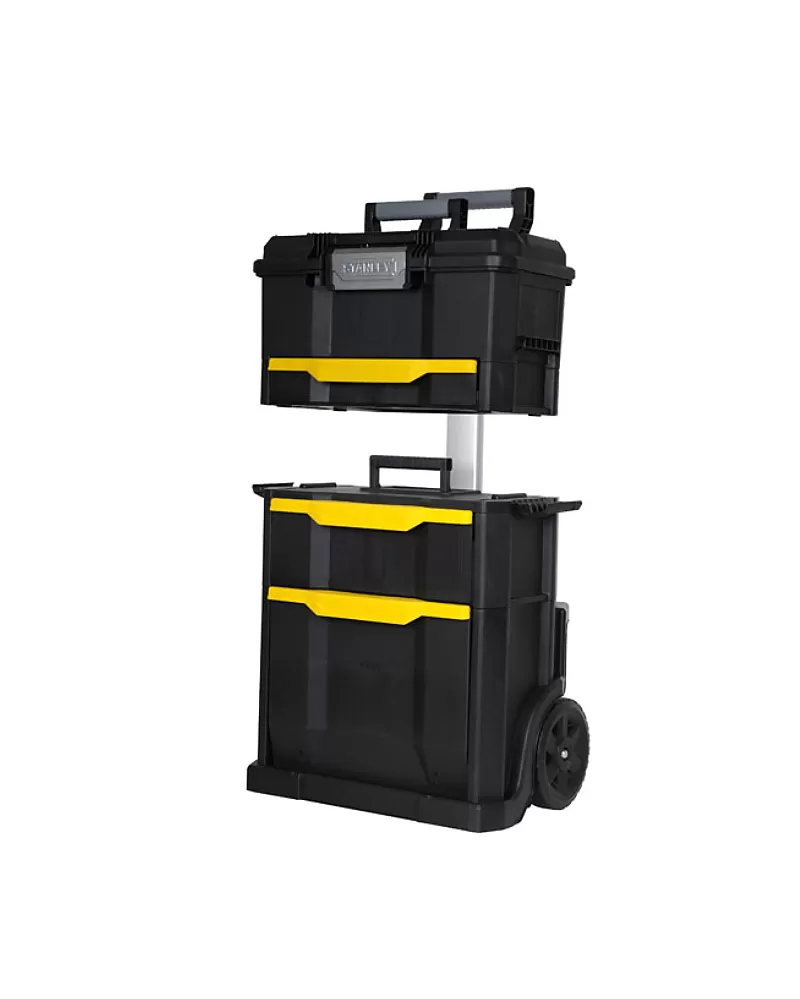Box na nářadí Stanley Rolling workshop STST1-70344 Rozkládací pojízdný box, samostatně přenositelný box i zásuvky Odolná hliníková… Celý popis