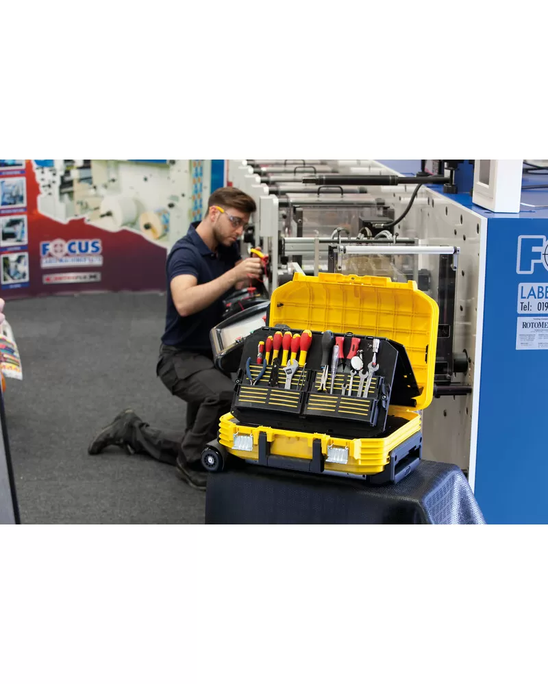 • Praktický odolný kufr s pojezdovými kolečky pro servisní techniky a udržbáře