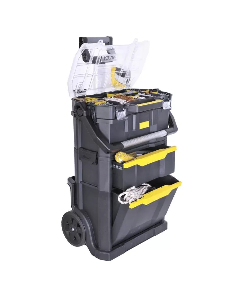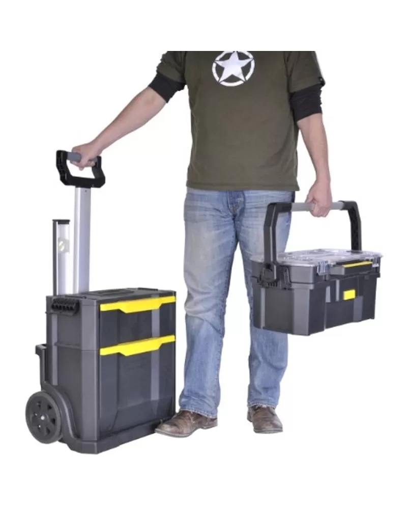 Pojízdná sada boxů STANLEY ROLING WORKSHOP STST1-79231 Rozkládací pojízdný box, samostatně přenositelný box i zásuvky Horní 19“… Celý popis