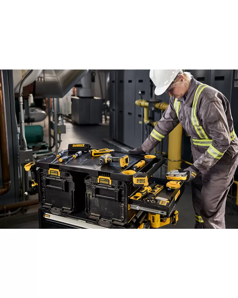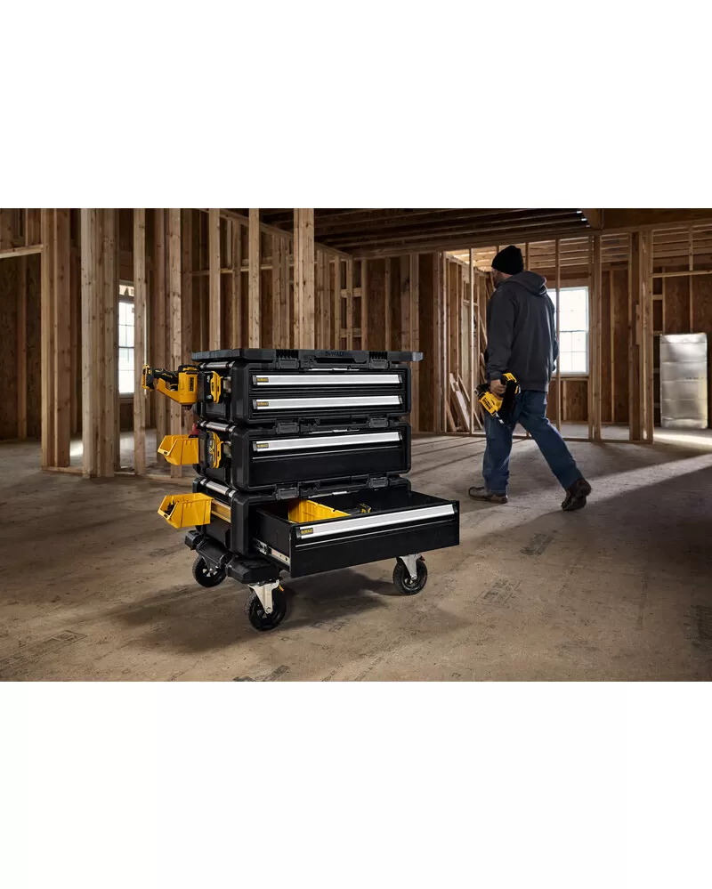 Skladujte, zabezpečte, převážejte a pracujte s pracovištěm TOUGHSYSTEM® 2.0 DXL™. Tato efektivní platforma produktivity se skládá ze 4 nezávislých produktů, které lze různě uspořádat, a v současné době neexistuje nic, co by nabízelo podobné možnosti pro komerční staveniště. Odolný terénní vozík, univerzální možnosti zásuvek a funkční pracovní deska dohromady vytvářejí univerzální pracovní stanici, která zajišťuje dostupnost nářadí, ať už vás práce zavede kamkoli.
