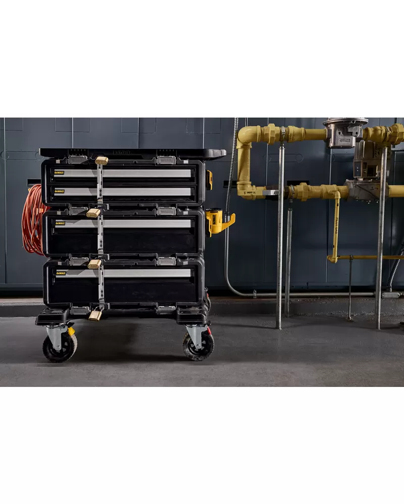 Skladujte, zabezpečte, převážejte a pracujte s pracovištěm TOUGHSYSTEM® 2.0 DXL™. Tato efektivní platforma produktivity se skládá ze 4 nezávislých produktů, které lze různě uspořádat, a v současné době neexistuje nic, co by nabízelo podobné možnosti pro komerční staveniště. Odolný terénní vozík, univerzální možnosti zásuvek a funkční pracovní deska dohromady vytvářejí univerzální pracovní stanici, která zajišťuje dostupnost nářadí, ať už vás práce zavede kamkoli.