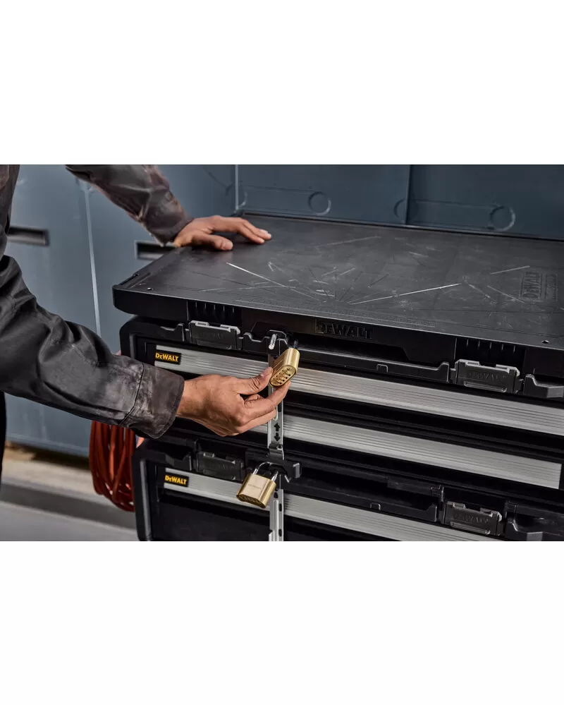 • Chraňte nářadí a vybavení před krádeží díky možnosti zajistit zásuvky společně pomocí zámku s visacím zámkem a integrovanou kovovou lištou.