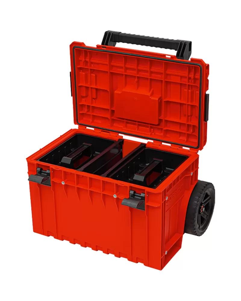 • Prostorný mobilní box na nářadí (Box ONE Cart 2.0 Red Ultra HD) navržený pro snadnou přepravu i v náročném terénu.