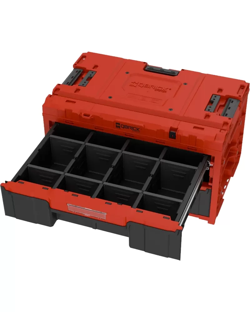 Box plastový s organizérem plastový QBRICK ONE 2.0 DRAWER 2 TOOLBOX RED Ultra HD Custom, 2 zásuvky 587x380x340 mm P90721