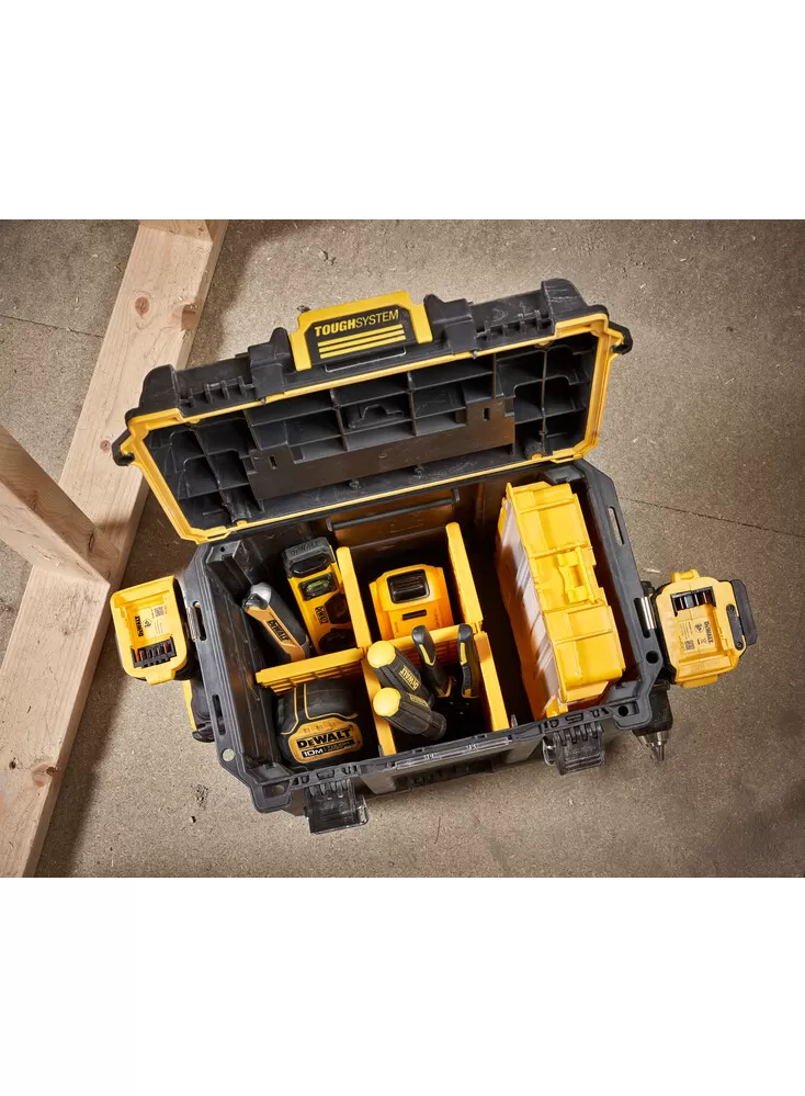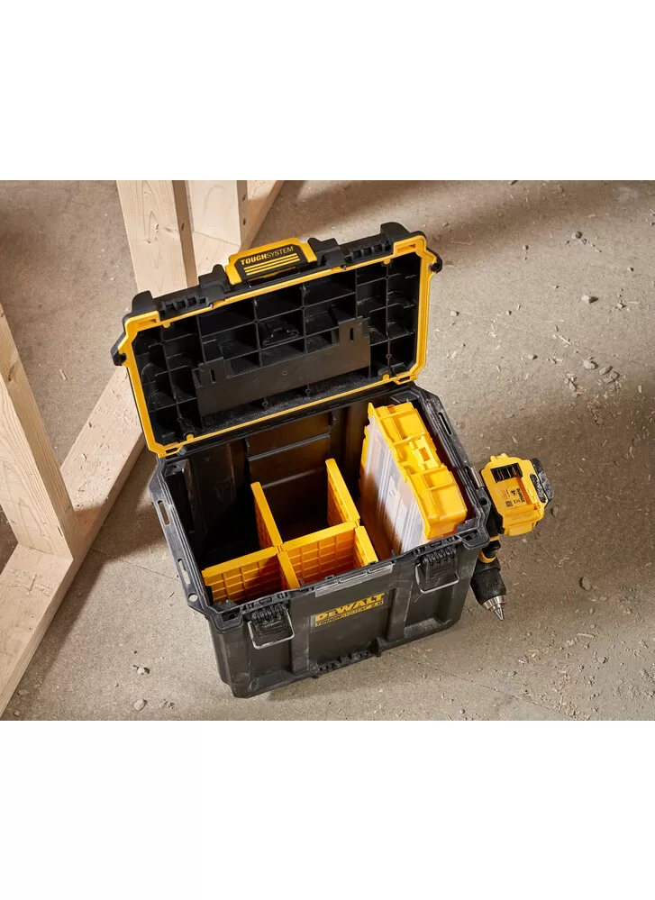 • Díky bohaté úložné kapacitě a víku se 4 odnímatelnými přepážkami vám toto řešení TOUGHSYSTEM® zajistí pořádek na náročných staveništích