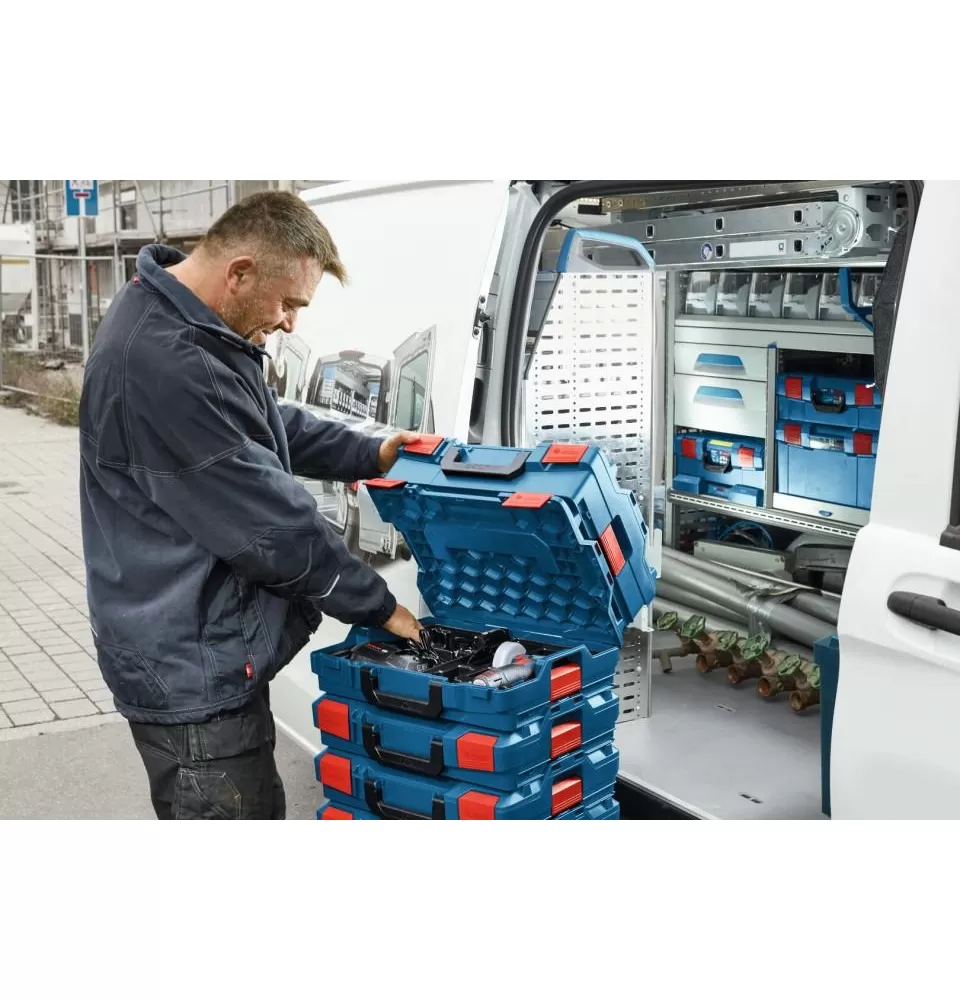 Profesionální kufr L-Boxx pro přepravu elektronářadí a příslušenství z nárazuvzdorného a voděodpudivého materiálu. Jednoduchý skládací mechanismus pro možnost stohování, komfortní přesky, pevnost a odolnost testována náročnými crash testy.