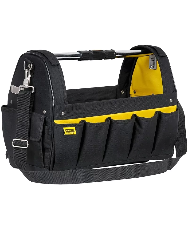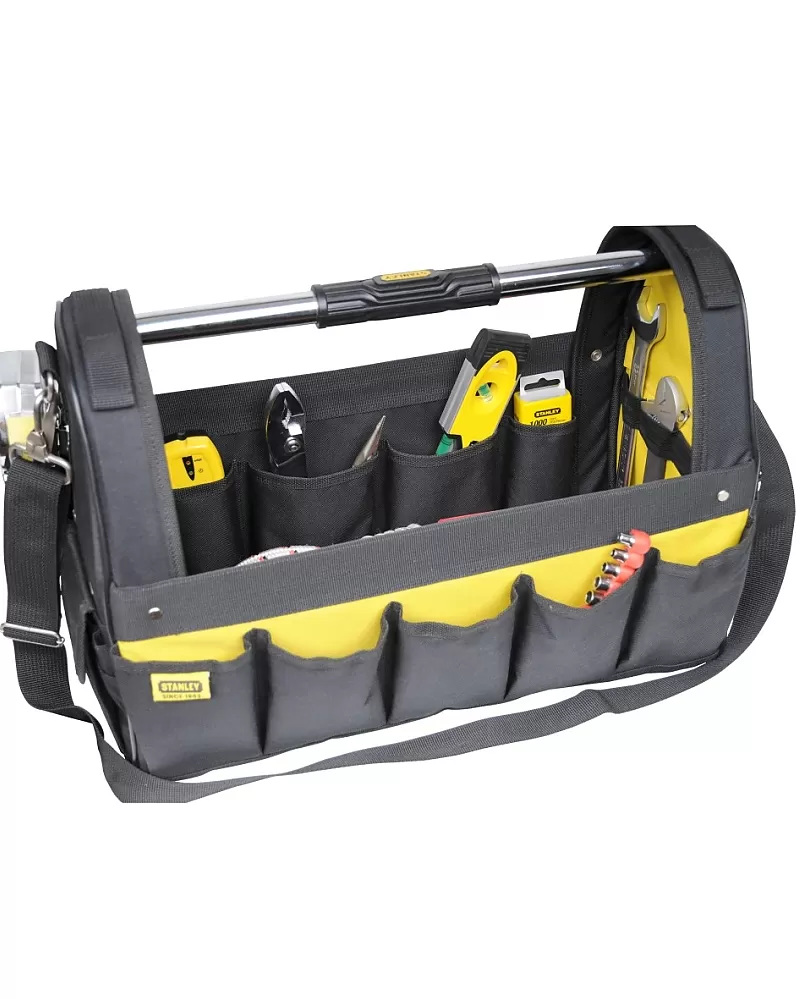 Otevřená přepravka na nářadí STANLEY FatMax Pevné voděodolné plastové dno Velmi pevné a odolné tyčové držadlo Ergonomické pryžové opláštění držadla Rozměrná konstrukce umožňující snadný přístup k obsahu Pohodlný ramenní popruh...