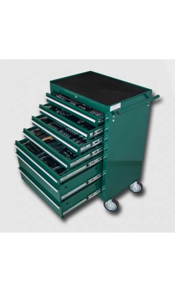 Montážní vozík na nářadí kovový vybavený 215dílů HONITON HA230 horní pracovní plocha i zásuvky jsou vypodloženy protiskluzovou podložkou