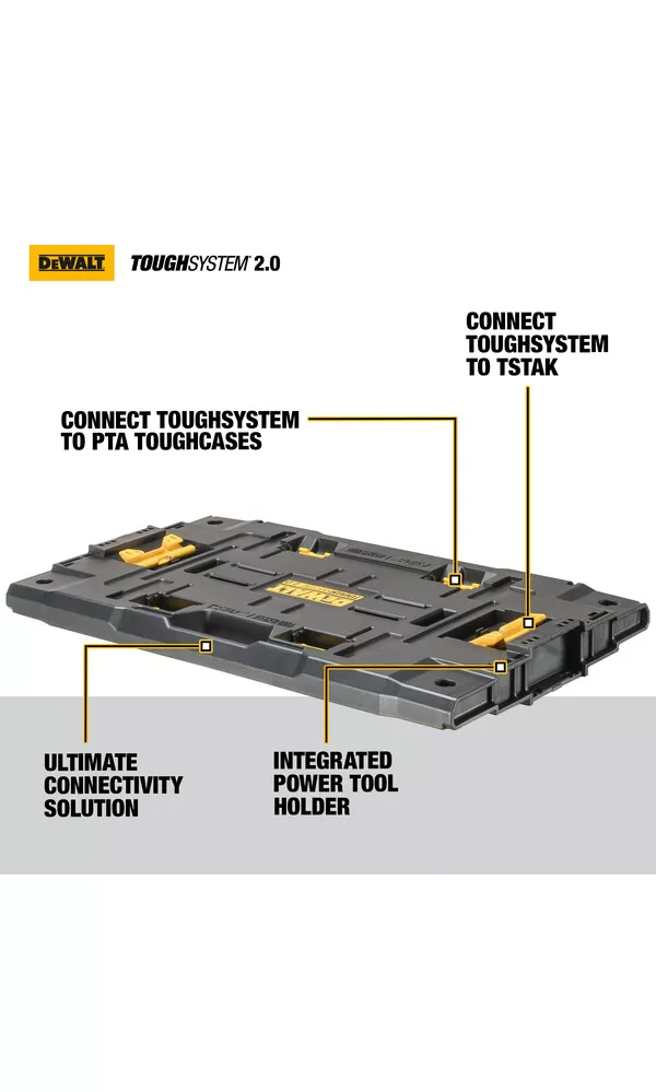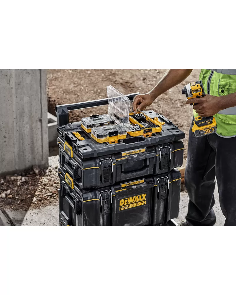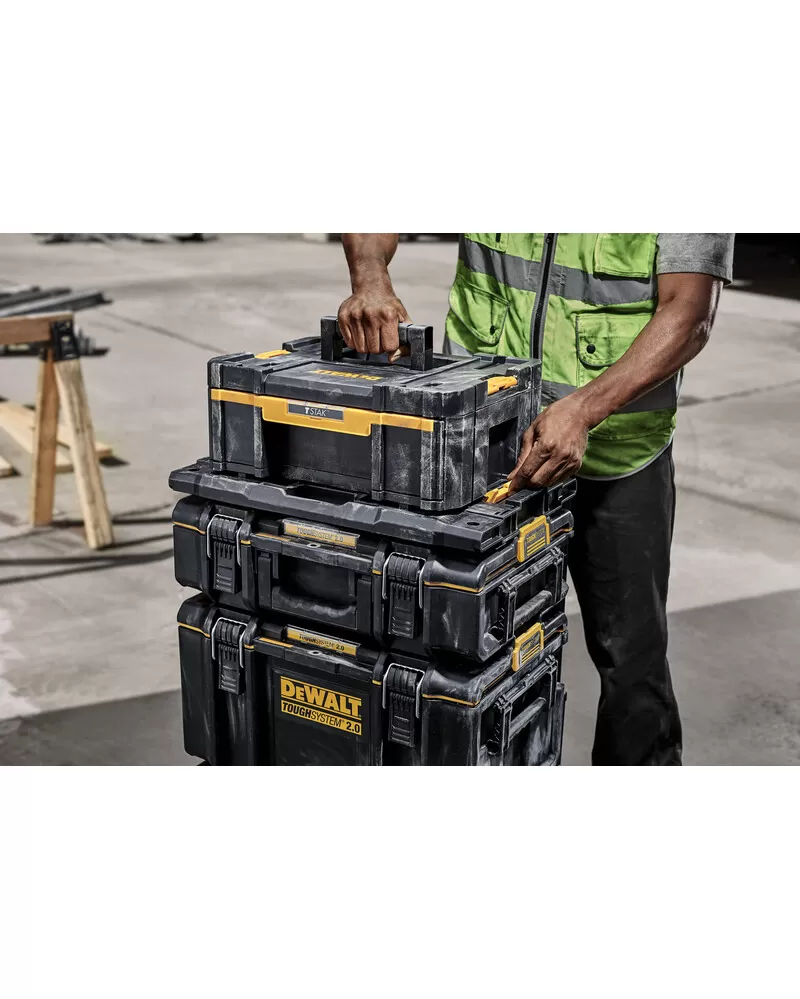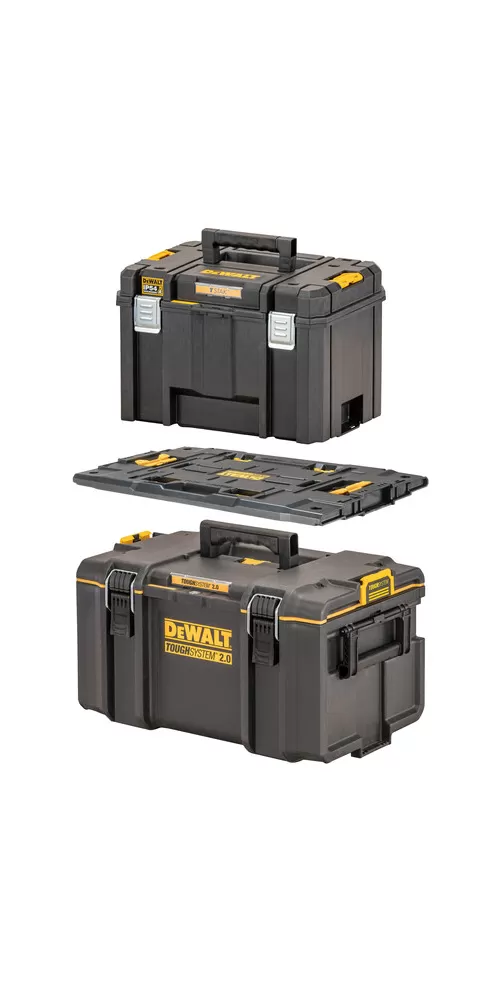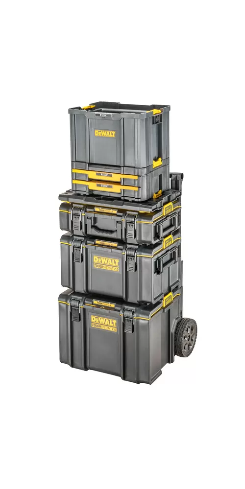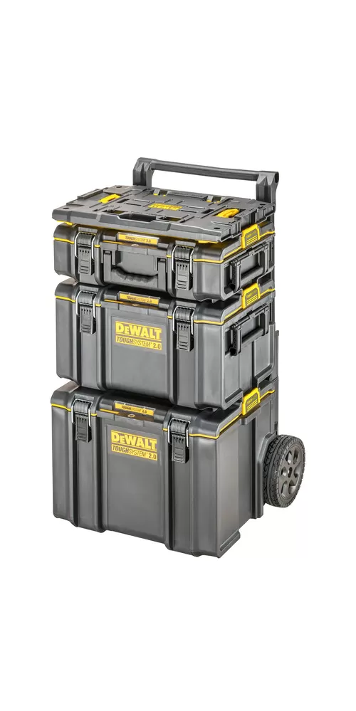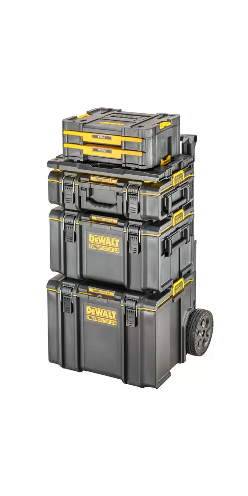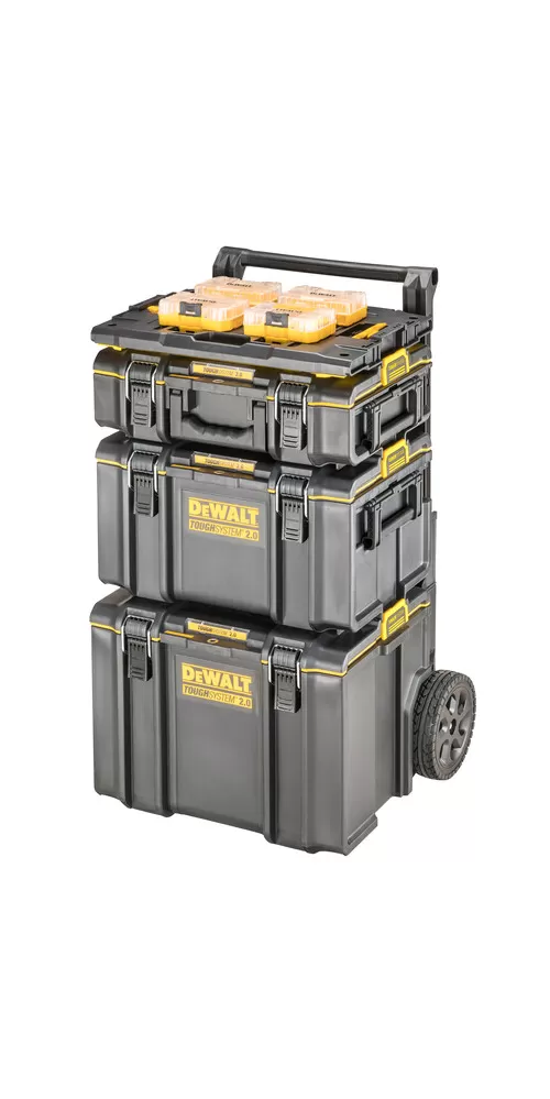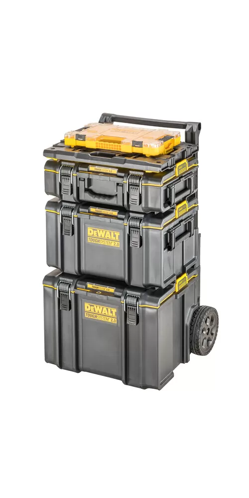 • DEWALT® TOUGHSYSTEM® je systém úložných boxov, vozíkov a ďalšieho príslušenstva na organizáciu náradia a materiálu