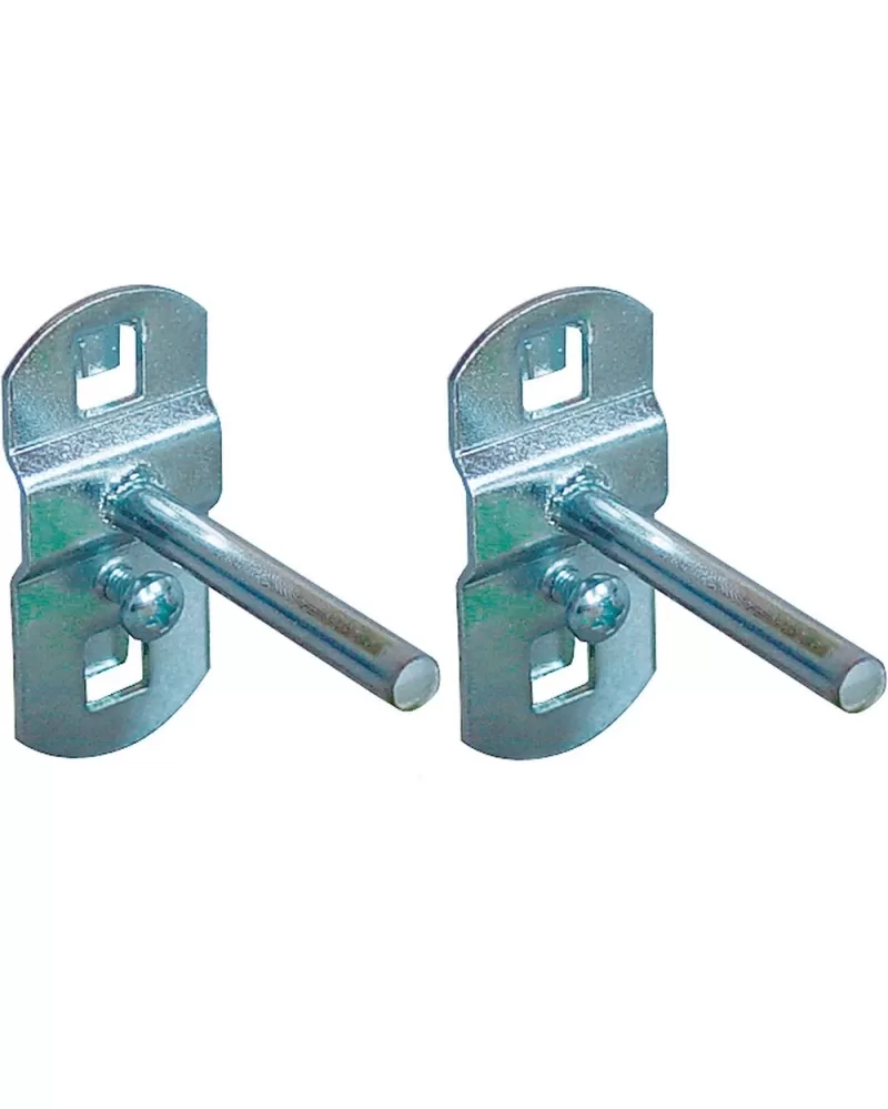 • Háky s rovným zakončením, kompatibilní s dílenskými závěsnými systémy, které využívají čtvercové děrování 10 mm2 při vertikální/horizontální vzdálenosti středů otvorů 38 mm