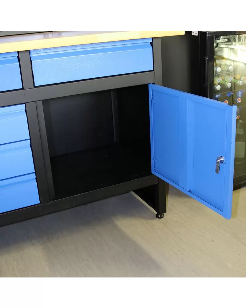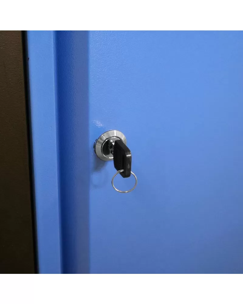 • 2 uzamykatelné dveřové skříňky (› d x š x v: 465 x 400 x 390 mm; dvířka s vnitřními výztužemi, cylindrické zámky - 1/1 klíč).