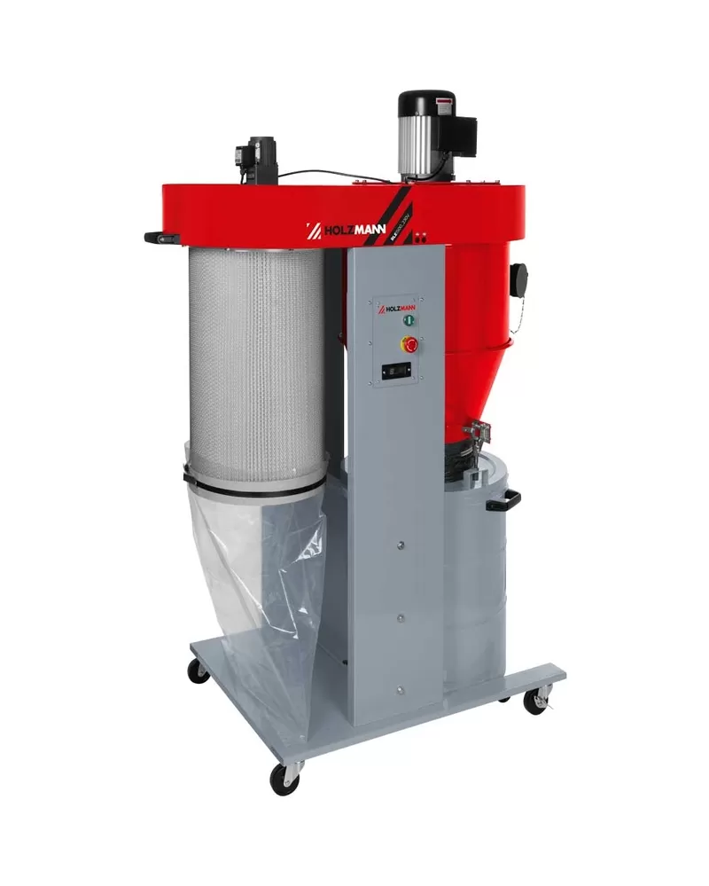 • Holzmann odsavač prachu RLE1500_230V s dálkovým ovládáním, manometrem podtlaku, cyklónovým separátorem a filtrační patronou je ideální odsávací zařízení pro vaše stroje na zpracování dřeva