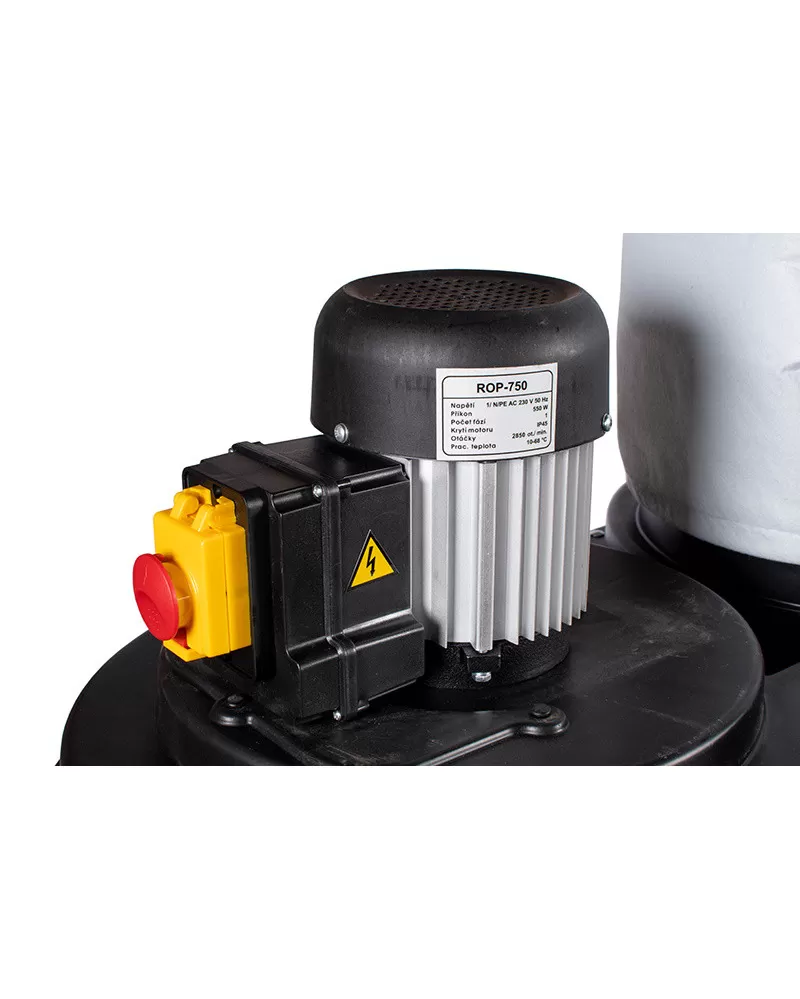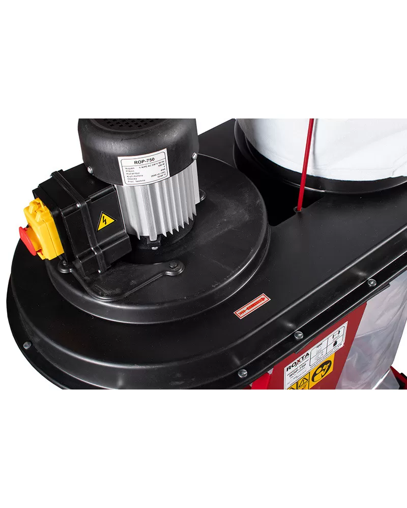 Odsavač prachu ROXTA ROP-750 s 2m hadicí, součástí dodávky jsou i 4ks adaptérů 100/70, 70/45, 45/40 a 10/35 mm.
