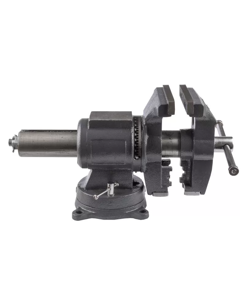 • Jeho robustní čelisti s tvrdostí 45 HRC zajistí pevné a spolehlivé uchycení materiálu, zatímco možnost otáčení svěráku horizontálně i vertikálně umožňuje pracovat v různých úhlech a polohách.