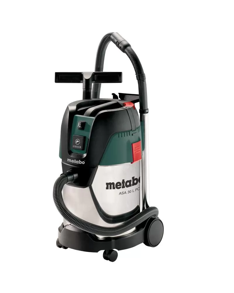 Lehký a velice kompaktní mnohoúčelný vysavač Metabo ASA 30 L PC Inox s odklepem filtru a nerezovou nádobou. Vhodný pro odsávání prachu, pevných částic i nehořlavých tekutin.