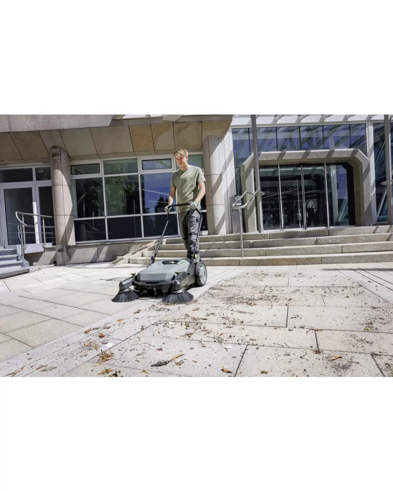 • V kombinaci s ručním pohonem se úklid vnitřních i venkovních ploch stává jednoduchým a efektivním: plošný výkon KM 70/20 C 2SB je 9krát vyšší než u koštěte.