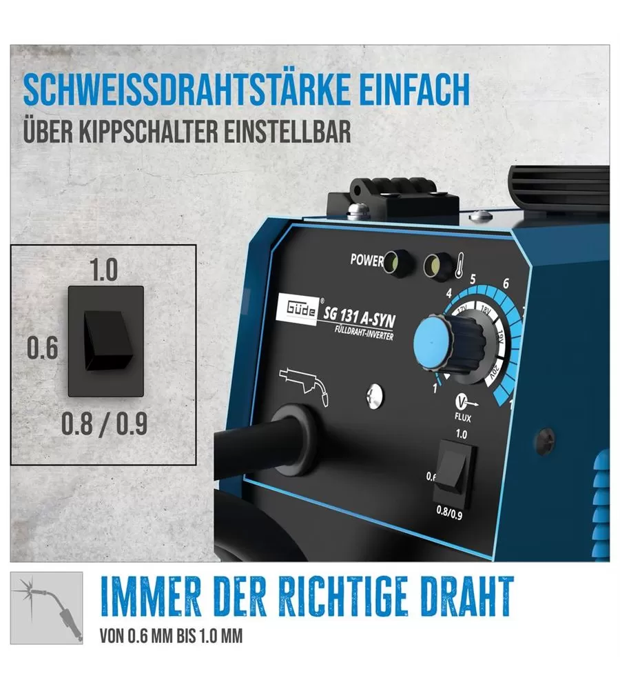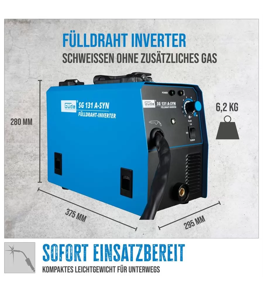 Svářečka SG 131 A-SYN s plněnou drátovou elektrodou Güde 20079