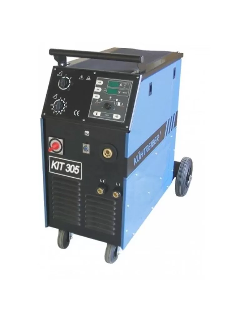 Profesionálny zvárací stroj KIT 305 Standard + zvárací horák Abicor Binzel MB 25 AK 4 m. Hlavnými výhodami stojanov KIT 305 STANDARD sú vynikajúce zváracie vlastnosti, jednoduchá obsluha, 20-stupňová regulácia zváracieho prúdu a predovšetkým spoľahlivosť. Zváračka KIT 305 STANDART je zástupcom stredne veľkých zváracích strojov určených pre stredne veľké zámočnícke, kovoobrábacie a údržbárske prevádzky. KIT 305 Standard je vybavený medeným primárnym a sekundárnym vinutím transformátora, tlmivkou, výkonným chladiacim ventilátorom, masívnym 2 kladkovým podávačom zváracieho drôtu 1+1 (kovové prevedenie), výkonným motorom podávania drôtu, EURO konektorom a nosičom cievky zváracieho drôtu umožňujúcim vloženie cievky 5 až 18 kg. KIT 305 Standard umožňuje pripojenie redukčného ventilu Co2 s predohrevom 42 V.