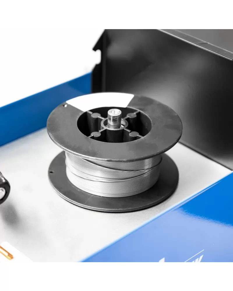 • Je okamžitě připravena k použití s připojeným balíkem hadic, ukostřovací svorkou, včetně 0,45 kg svařovacího drátu, 3 náhradních trysek 0,9 mm a náhradního podávacího válečku 0,9 mm