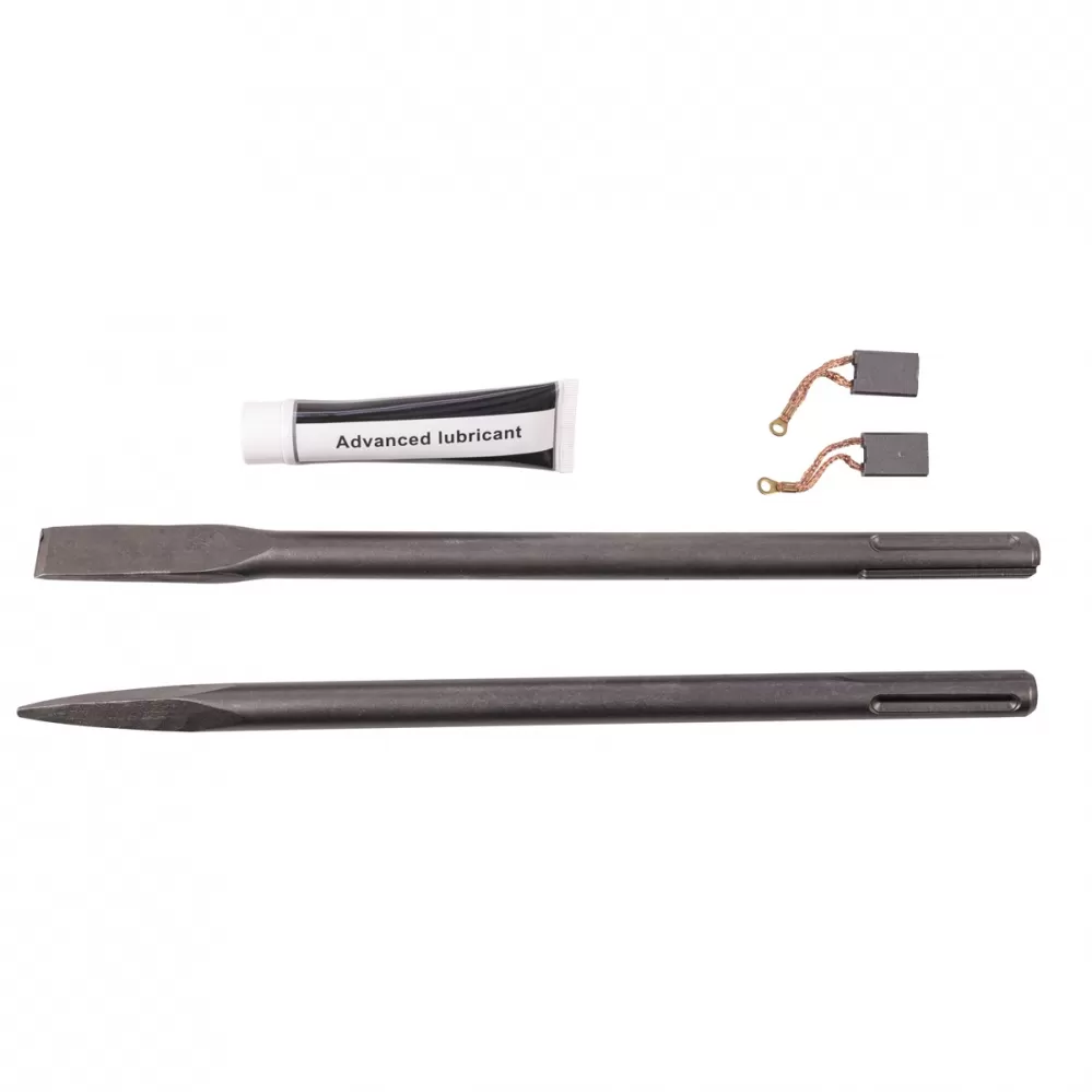 Moderní konstrukce je doplněna o mnoho funkčních a komfortních prvků, jako jsou protiskluzová antivibrační rukojeť, madlo nastavitelné v rozsahu 360° bez použití nářadí, poloha sekáče nastavitelná do 12 poloh, 6 stupňů frekvence příklepu v závislosti na materiálu, aretace chodu spínače pro možnost nepřetržitého chodu, upínání SDS MAX pro snadnou výměnu nástroje, 3 m dlouhý přívodní kabel nebo robustní kufr s kolečky. Silný motor 1700 W má zvýšenou ochranu proti přehřátí. Upínací šestihran 30 mm dovoluje lehkou výměnu sekáčů a úchyt zamezuje jejich protáčení ve stroji. Kladivo je už v základu vybaveno základním příslušenstvím (plastické mazivo, náhradní uhlíky, imbusový klíč) a dvěma sekáči s plochou a špičatou koncovkou