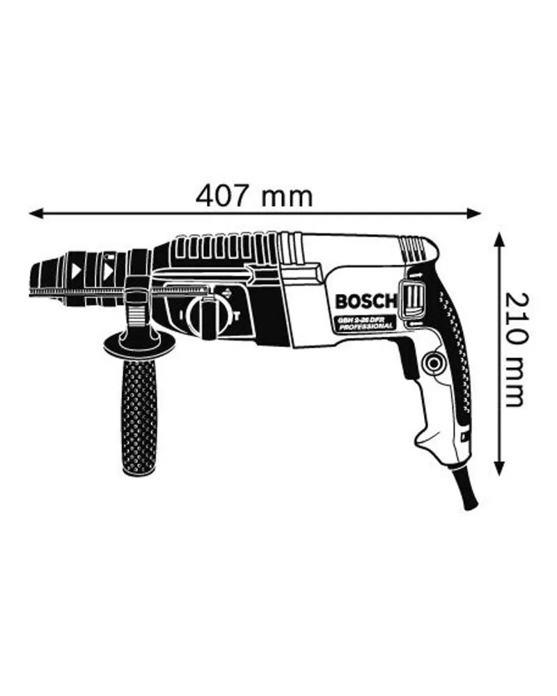 Bosch GBH 2-26 DFR Professional je kvalitní vrtací kladivo s výkonným 800W motorem a intenzitou příklepu 3 Jouly pro rychlý průběh vrtání.