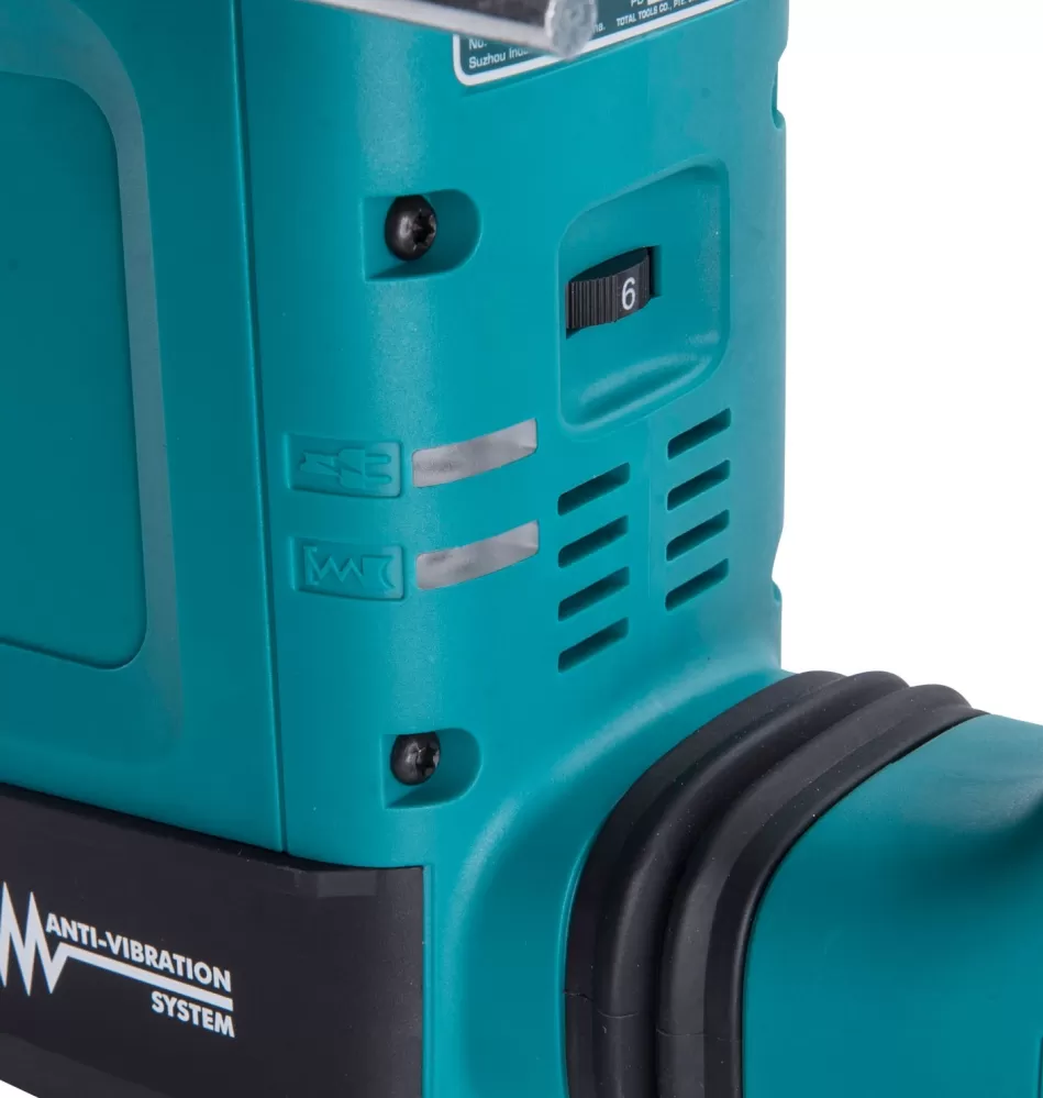 • Kladivo má systém aretace dláta, duální antivibrační systém, indikátor pro napájení a pro opotřebení uhlíků