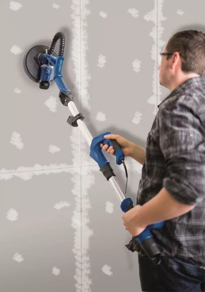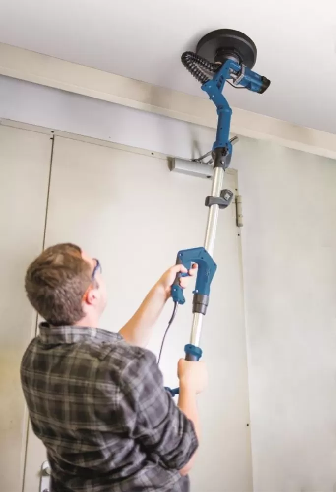 Díky kvalitní brusce Scheppach DS 930 s dlouhým krkem a velkou brusnou plochou (tzv. žirafa) nyní můžete mnohem rychleji dokončit broušení sádrokartonových či polystyrénových desek, přípravu povrchu před lakováním nebo leštěním, odstranění zaschlého lepidla z podlahy a další podobné práce na větších plochách.