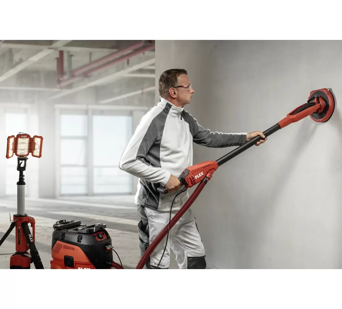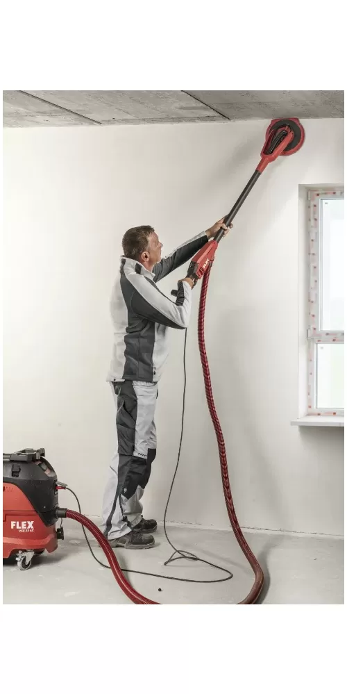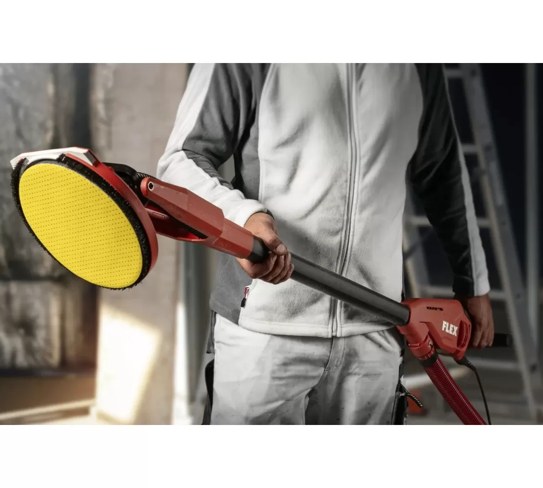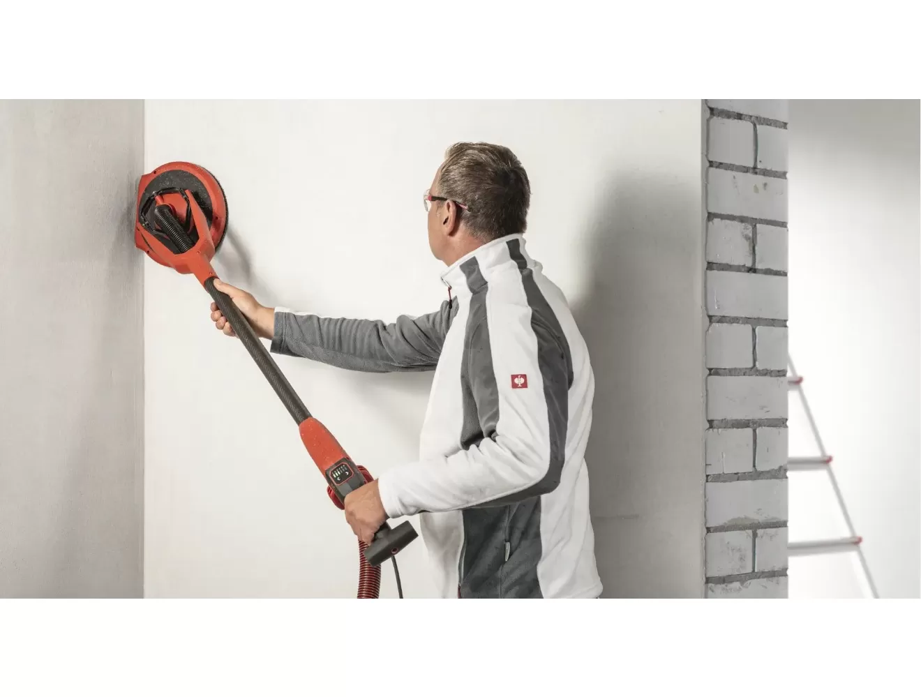 • Velmi plochá, kardanová brusná hlava s rozsahem výkyvu 160° umožňuje vysokou flexibilitu a optimální nastavení při broušení stěn a stropů. Dalším plusem je díky inovované planetové převodovce v brusné hlavě provoz bez vibrací pro perfektní povrchovou úpravu.