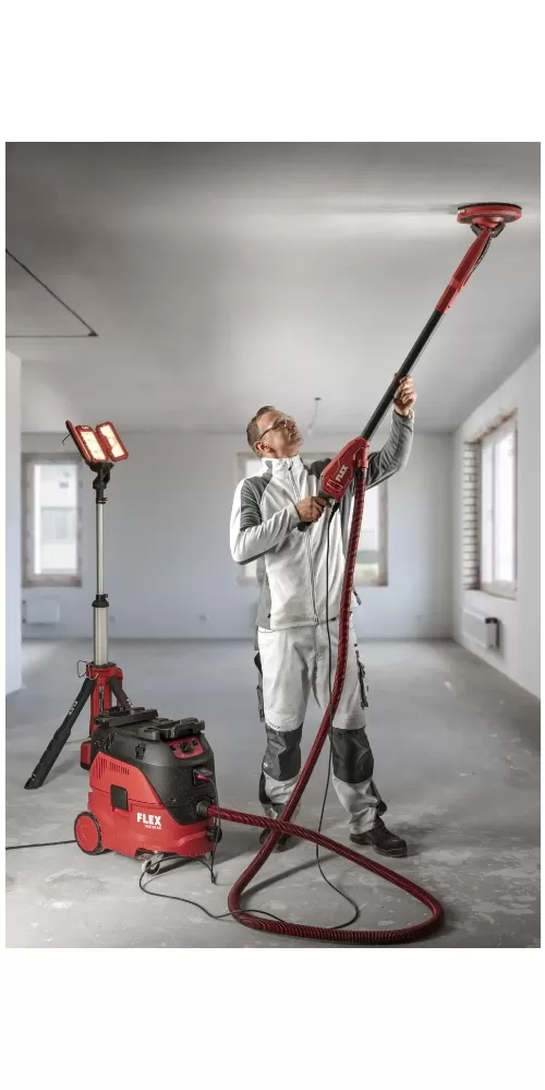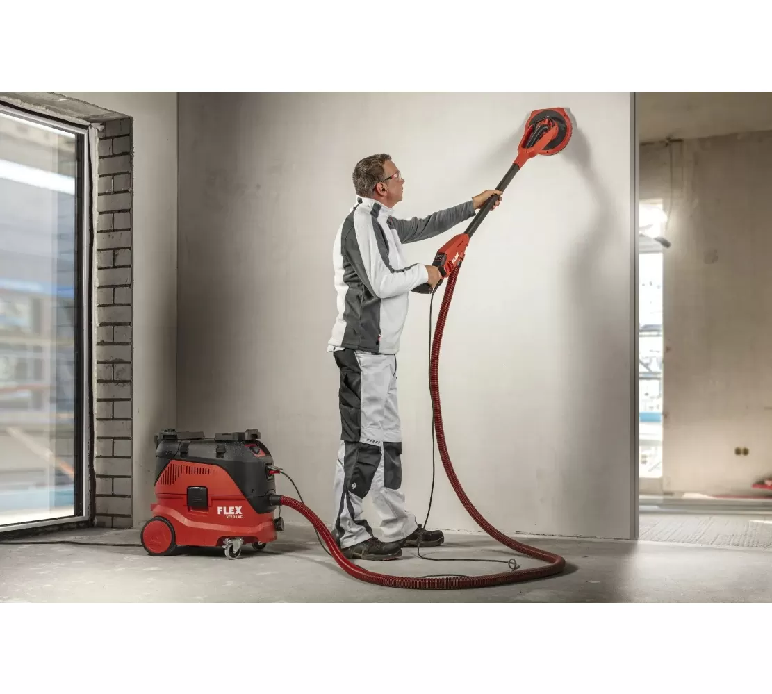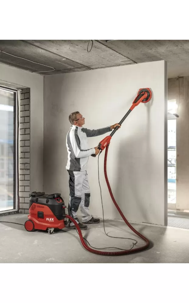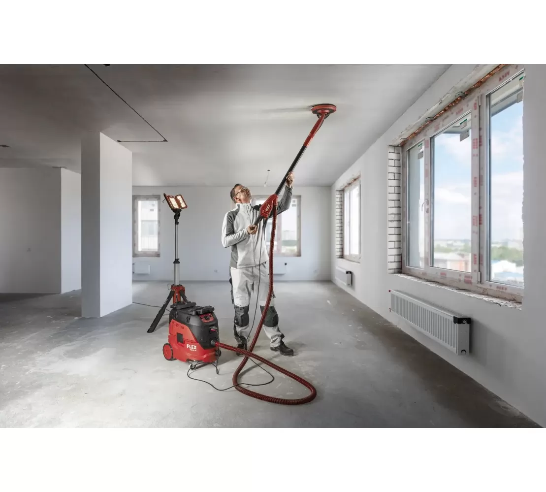 • Velmi plochá, kardanová brusná hlava s rozsahem výkyvu 160° umožňuje vysokou flexibilitu a optimální nastavení při broušení stěn a stropů. Dalším plusem je díky inovované planetové převodovce v brusné hlavě provoz bez vibrací pro perfektní povrchovou úpravu.