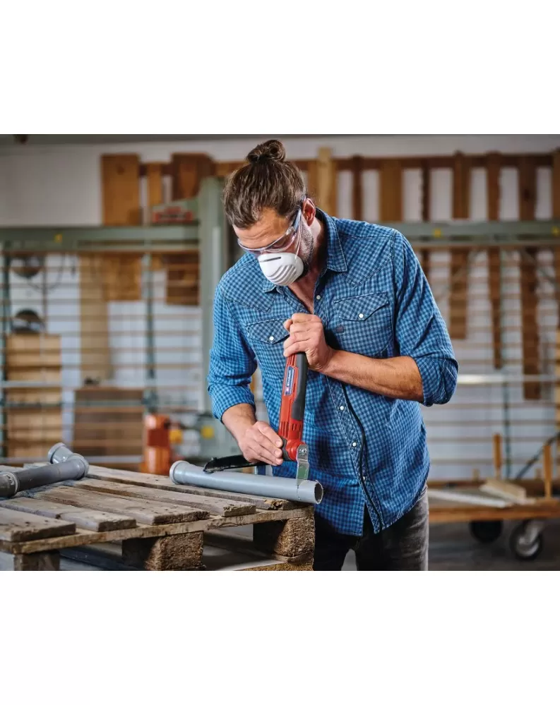 Multifunkčné zariadenie Einhell TC-MG 250 CE je kompaktné univerzálne zariadenie, ktoré podporuje ambicióznych domácich majstrov pri stavebných úpravách, rekonštrukciách a rekonštrukciách. Rezanie, brúsenie, škrabanie a oveľa viac je s týmto praktickým všestranným strojčekom rýchle a jednoduché. Výkonný 250W motor ponúka dostatok výkonu pre náročné projekty a rýchlostná elektronika umožňuje prácu prispôsobenú materiálu a použitiu. Konštantná elektronika zabezpečuje konštantný výkon. Magnetický držiak náradia nastaviteľný v 12 smeroch umožňuje jednoduchú výmenu a optimálne umiestnenie príslušenstva. Dlhšiu prácu uľahčuje vypínač s funkciou aretácie. Multifunkčné zariadenie má uhol oscilácie 3° a vďaka štíhlemu ergonomickému dizajnu s povrchom Softgrip sa vždy pohodlne a bezpečne drží v ruke. Dodávané zariadenie na odsávanie prachu je možné nainštalovať bez použitia náradia. Súčasťou dodávky je ponorný pílový list na drevo a plast a imbusový kľúč na výmenu nástroja. Súčasťou dodávky je navyše trojuholníková brúsna doska, deväť brúsnych papierov (3x K60, 3x K80, 3x K120) a škrabka.