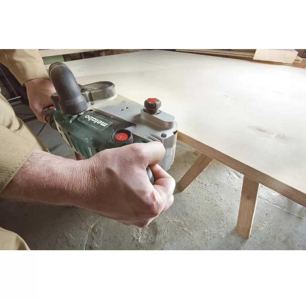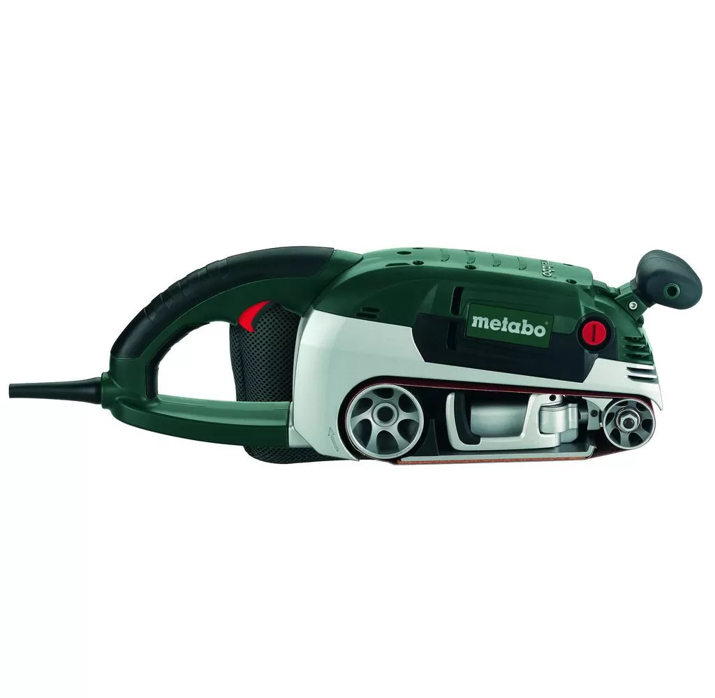 Výkonná pásová bruska Metabo BAE 75 s možností jednoduché a rychlé výměny brusného pásu, bezpečnostní spojkou Metabo S-automatik a zabudovaným odsáváním.