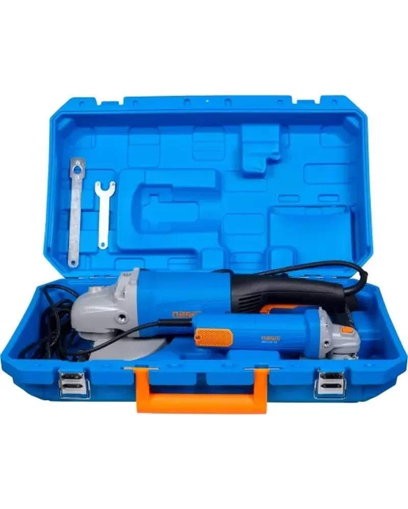 • Set úhlových brusek NAREX v praktickém kufru. Součástí jsou úhlové brusky EBU 125-10 a EBU 230-26