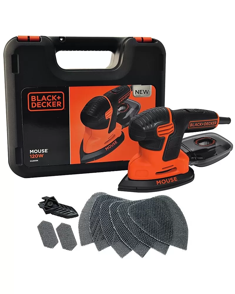 Vibrační bruska Mouse Black&Decker KA2500K s novou a inovativní rychloupínací brusnou síťovinou s delší životností než brusný papír.