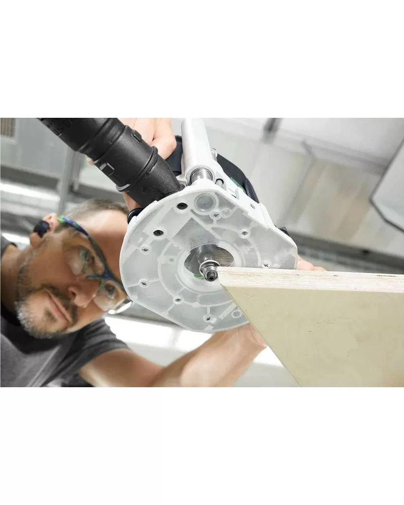 • Volný výhled na obrobek a zdravější, přesnou a časově úspornou práci zabezpečuje perfektní kombinace s mobilními vysavači Festool. Bajonetový uzávěr umožňuje jednoduché nasazení a spolehlivé upevnění sacích hadic D 27 a D 36.