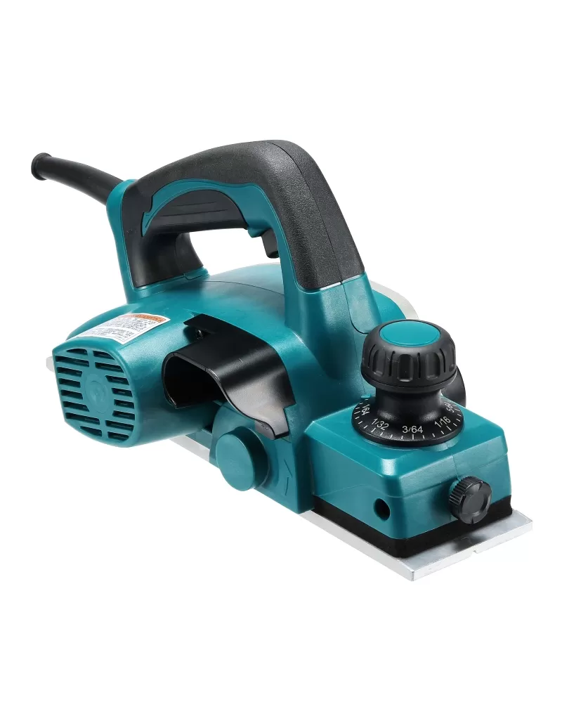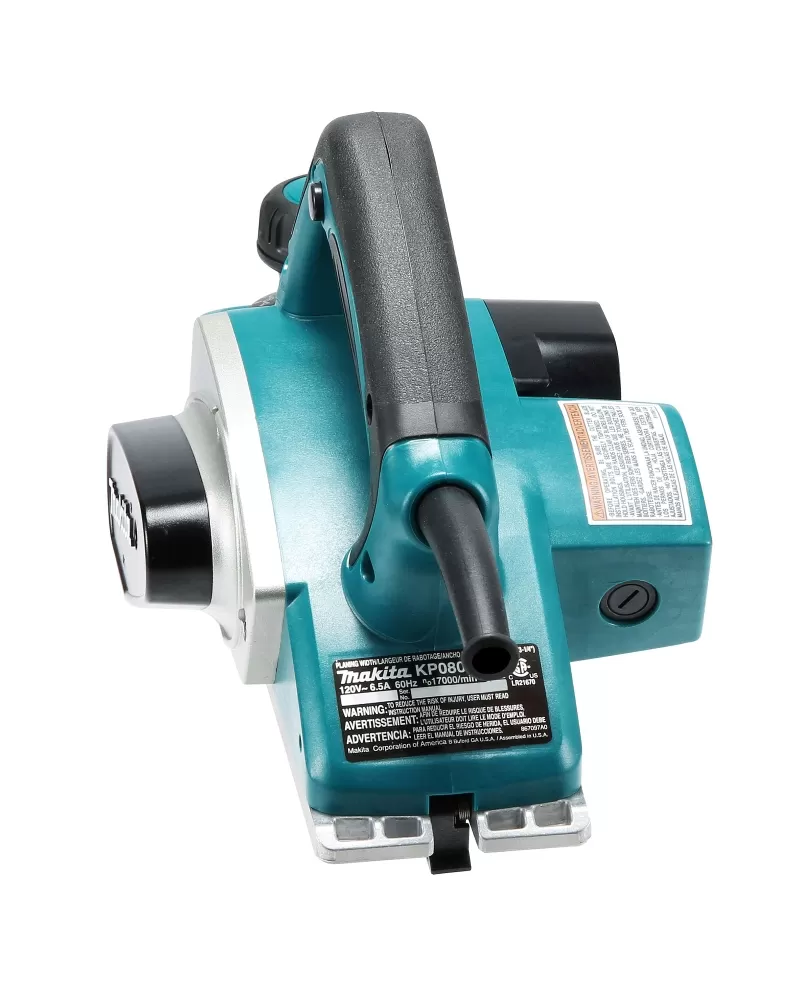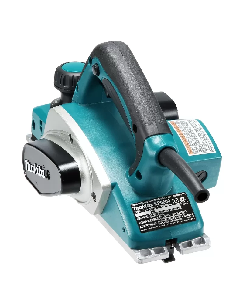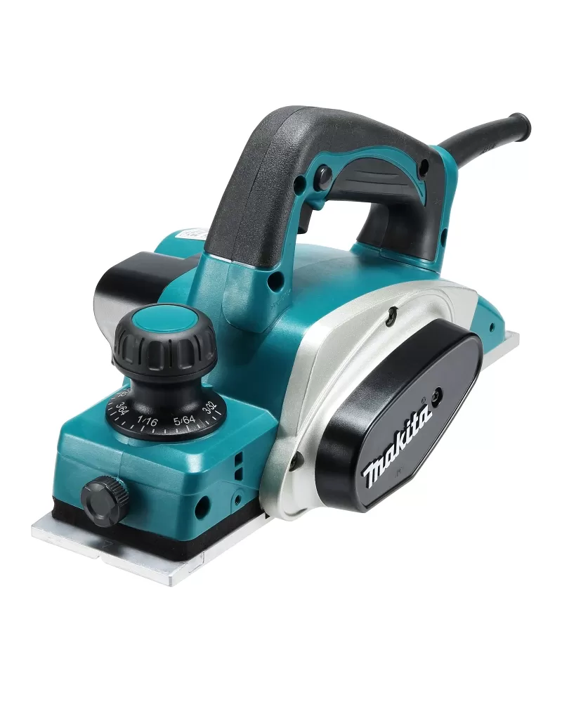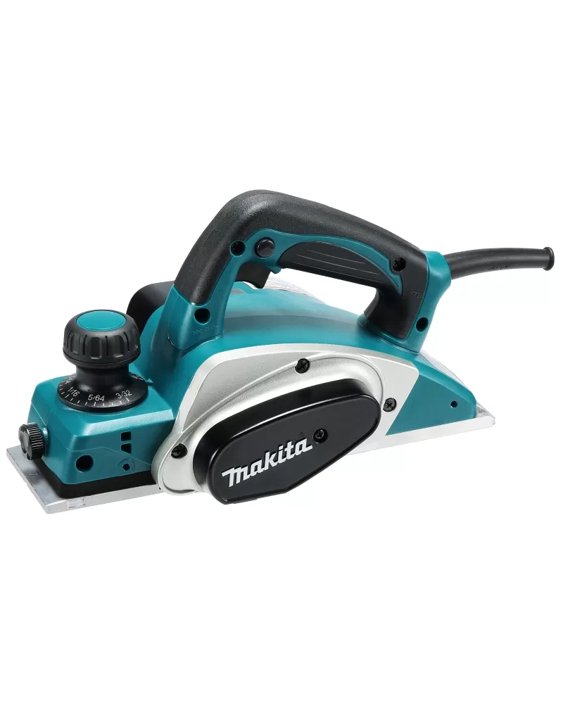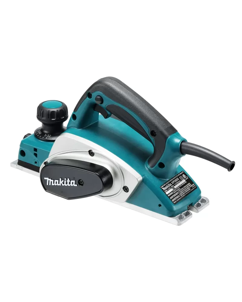 82 mm hoblík Makita KP0800 s maximálnou hĺbkou úberu 2,5 mm a plynulým nastavovaním hĺbky s aretáciou v krokoch po 0,1 mm.