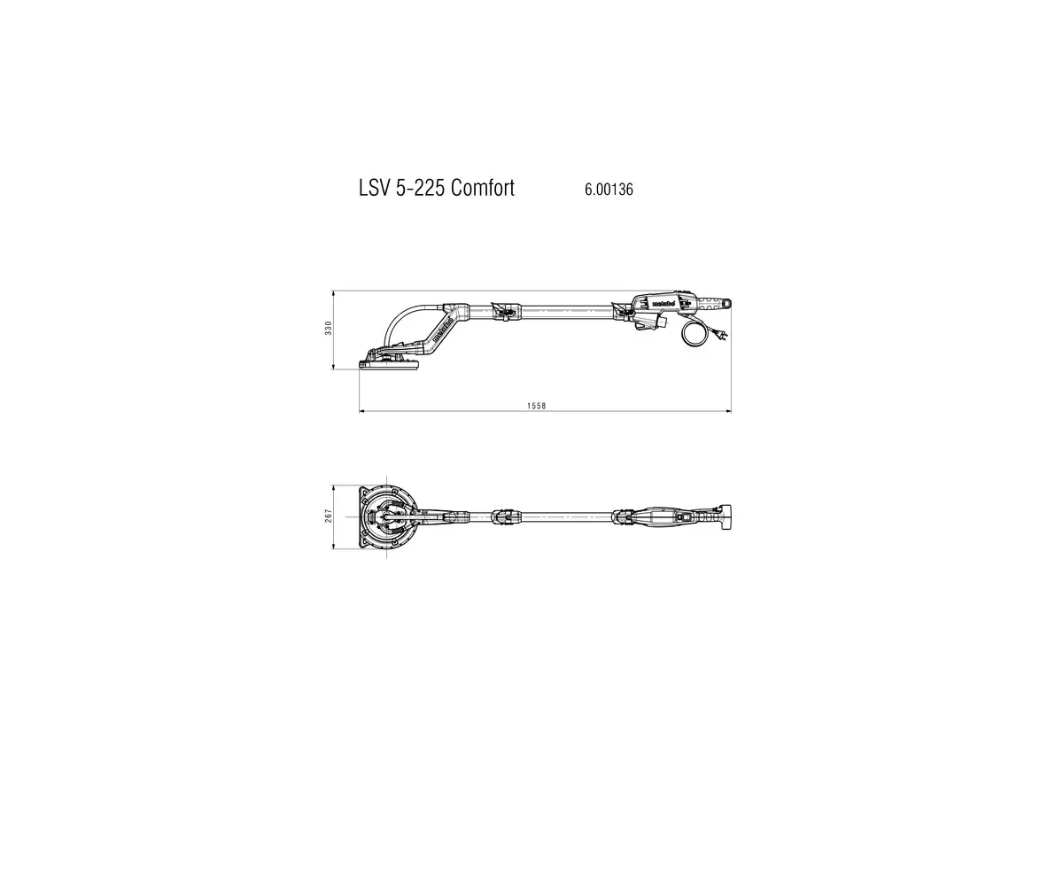 Bruska s dlouhým krkem LSV 5-225 Comfort: Optimální rovnováha při práci, poněvadž těžiště stroje neleží na hlavě. Odsávání krytem bez hadice pro maximální flexibilitu brusné hlavy. S variabilním nastavením délky: lze rychle a snadno zkrátit nebo prodloužit pro úzké prostory nebo velké stropní výšky. Připojitelné LED světlo.