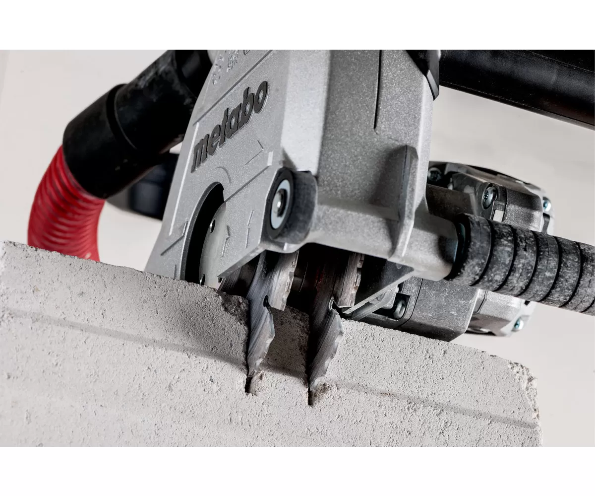 Fréza na zdivo MFE 40 ideální pro elektroinstalace k pokládání kabelů a chrániček pod omítku s hloubkou frézování do 40 mm. Maximální postup práce díky silnému motoru, konstantním otáčkám a dvoustupňové vysoce výkonné převodovce. Nastavitelná šířka drážky a hloubka řezu. Celovlnná elektronika Tacho-Constamatic (TC): Rychlý postup práce díky konstantním otáčkám při zatížení.