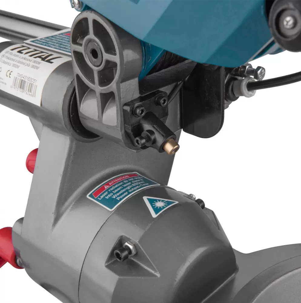 • Pila je vybavena laserovým zdrojem, napájeným ze sítě, který na materiál promítá červenou linii pro přesné vedení řezu