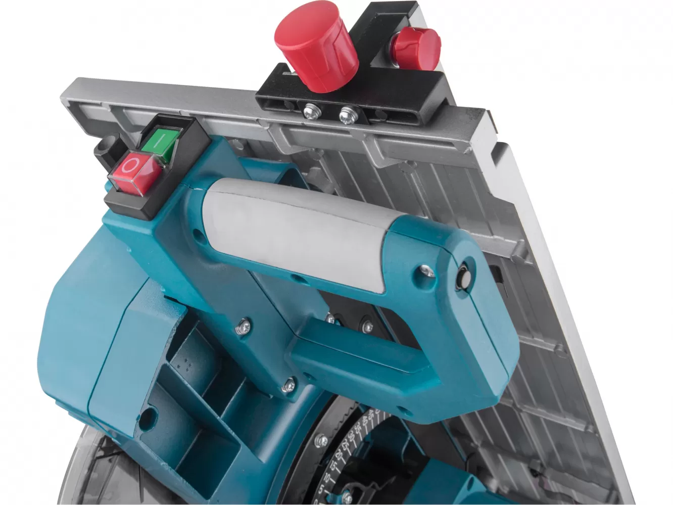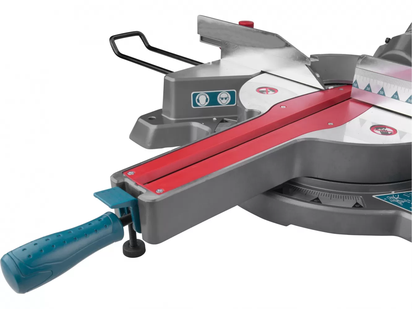 • Pila je dále vybavena pojezdem motorové jednotky pro řezání širších obrobků, hloubkovým dorazem pro řezání drážek a vysunovatelnými podpěrami obrobku s aretací pro řezání delších materiálů