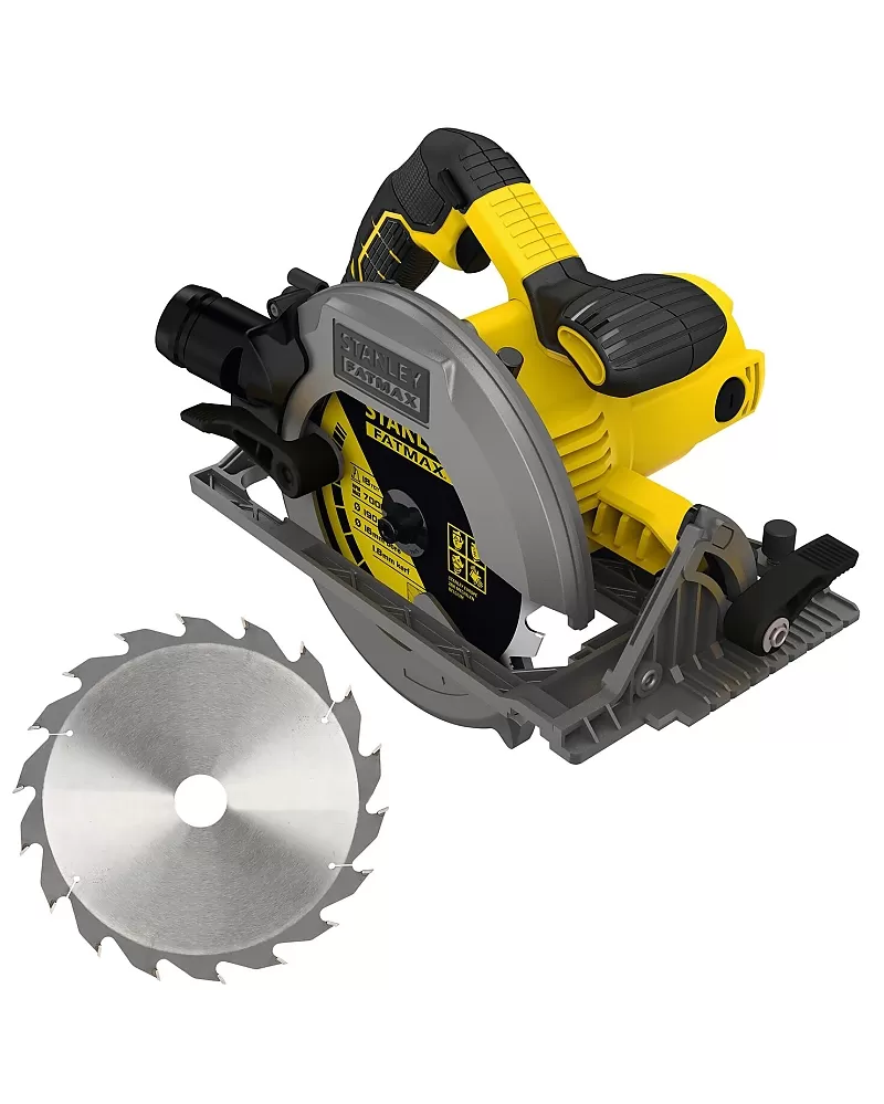 Ruční okružní pila 190mm Stanley FatMax FME301K s výkonným motorem, nastavením úhlu řezu v rozmění 45-90°a snadnou výměnou kotouče.