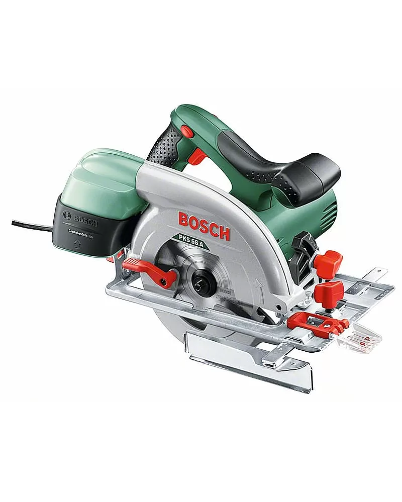 Ruční okružní pila Bosch PKS 55A Výkonný motor 1 200 W a hloubka řezu do dřeva 55 mm CleanSystem Box pro čistou práci CutControl pro… Celý popis