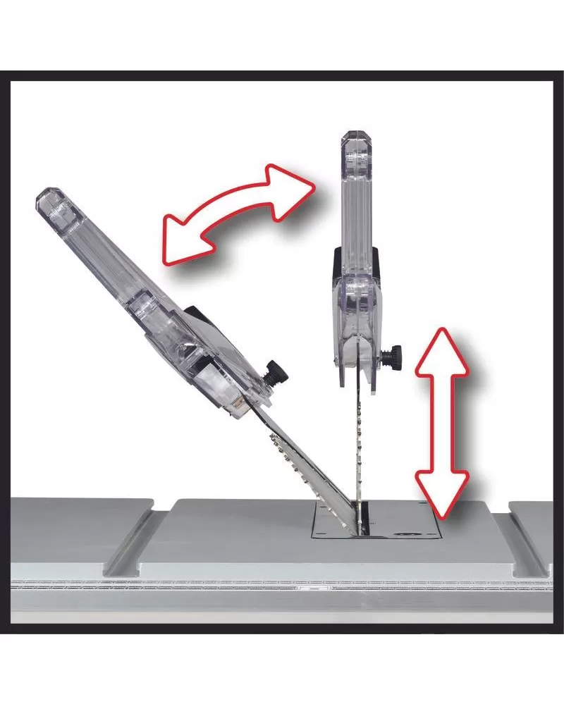 • S touto stolní kotoučovou pilou s otočným kotoučem (až 45°) a snadno nastavitelnou výškou (max. řezání při 45°: 63 mm/max. výška sečení při 90°: 89 mm) můžete přijmout jakoukoli výzvu. Hladký start díky funkci softstart minimalizuje namáhání motoru. Hlavní stůl je vyroben z hliníku, přesný povrch je základ pro snadné a přesné řezání. Šířku stolu lze rychle upravit pro obrobky až do 660 mm. Paralelní doraz s excentrickým upínáním a úhlový doraz (+/-60°). Pila je opatřena přípojkou pro odsávání třísek (O36mm), což zajišťuje vždy čisté pracoviště. Snadnou přepravu slibují takové vlastnosti, jako je kompaktní design, integrované rukojeti a skutečnost, že ke spuštění integrované štípačky není potřeba žádné nářadí. Na krytu jsou umístěny držáky pro příslušenství a kabely.